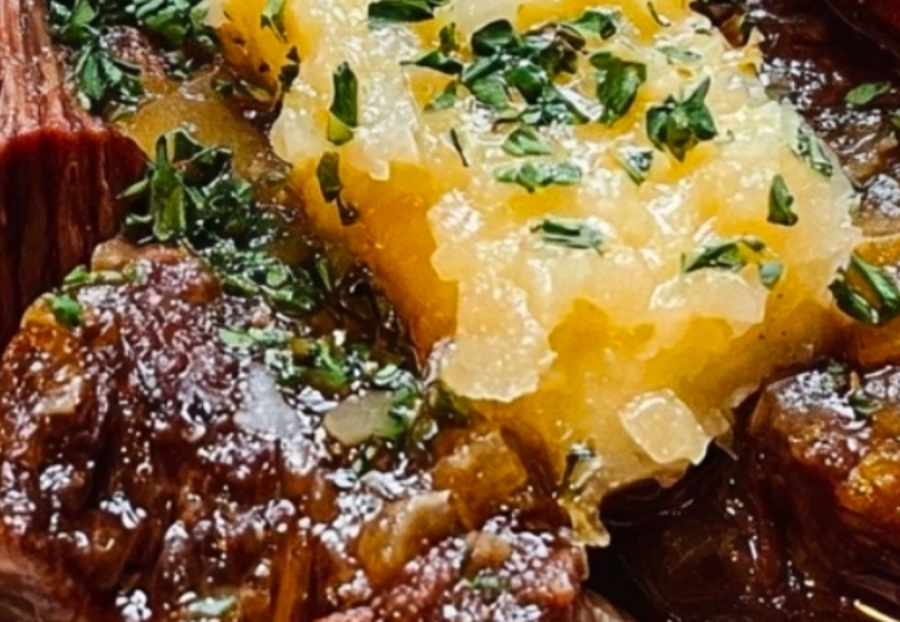 Ingredients: 1 lb (450g) beef stew meat, cut into chunks1 medium onion, chopped2 cloves garlic, minced2 carrots, peeled and sliced2 celery stalks, chopped4 cups beef broth2 tbsp olive oil1 tbsp Worcestershire sauce1 tsp dried thyme1 tsp dried rosemary1 bay leafSalt and pepper to taste2 slices of crusty bread, toasted (for serving)Fresh parsley, chopped (for garnish)Instructions: Sear the Beef:In a large pot, heat olive oil over medium-high heat. Add the beef chunks and sear until browned on all sides. Remove the beef and set it aside.Sauté Vegetables:In the same pot, add the chopped onions, carrots, and celery. Sauté for about 5-7 minutes, until the vegetables start to soften. Add the garlic and cook for another minute.Simmer the Stew:Return the beef to the pot. Add the beef broth, Worcestershire sauce, thyme, rosemary, bay leaf, salt, and pepper. Stir to combine, then bring the mixture to a boil.Cook the Stew:Once it reaches a boil, reduce the heat to low, cover the pot, and let it simmer for 1.5 to 2 hours, or until the beef is tender and the flavors are well combined.Prepare Toasted Bread:While the stew is simmering, toast two slices of crusty bread. You can also rub them with a bit of garlic or butter for extra flavor if you prefer.Serve and Garnish:Remove the bay leaf from the stew. Serve the beef stew in bowls, topped with fresh parsley and a slice of toasted bread on the side.Enjoy your hearty, flavorful beef stew!