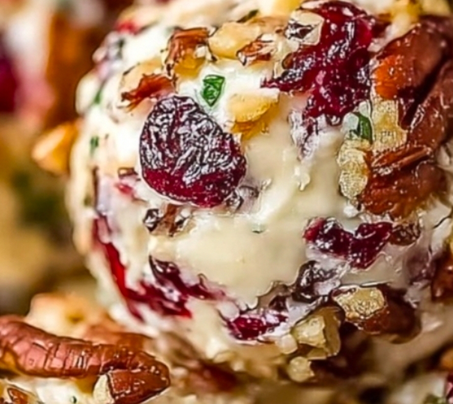 Cranberry Pecan Cheese Balls Recipe These Cranberry Pecan Cheese Balls are a perfect blend of creamy cheese, sweet cranberries, and crunchy pecans. They’re simple to make and ideal for holiday gatherings, parties, or as a delicious appetizer. These bite-sized treats will add a festive touch to any table and are sure to be a crowd favorite. Ingredients: 8 oz cream cheese, softened1 cup shredded sharp cheddar cheese1/2 cup chopped pecans, plus extra for coating1/4 cup dried cranberries, chopped1 tbsp fresh parsley, chopped1 tbsp honey (optional)Salt and pepper to tasteInstructions: Prepare the Mixture: In a large mixing bowl, combine the softened cream cheese, shredded cheddar cheese, chopped pecans, dried cranberries, and parsley. Mix well until all ingredients are fully incorporated.Season: Add salt and pepper to taste, and stir in honey if you prefer a hint of sweetness.Form the Balls: Take small portions of the mixture and roll them into bite-sized balls. If the mixture is too sticky, wet your hands slightly for easier rolling.Coat the Balls: Roll each cheese ball in the extra chopped pecans, pressing gently so they stick. This will add a nice crunch to the outside.Chill: Place the cheese balls on a parchment-lined tray and refrigerate for at least 30 minutes to allow the flavors to meld together.Serve: Arrange the cranberry pecan cheese balls on a platter and serve chilled. These make a perfect festive appetizer for your holiday meals or gatherings!Enjoy the creamy, sweet, and savory flavors in each bite!