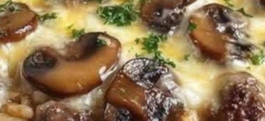 Ingredients1 lb ground beef1 cup chopped mushrooms1 small onion, diced1 cup uncooked white rice1 can (10.5 oz) cream of mushroom soup2 cups beef broth1/2 cup sour cream1 teaspoon garlic powderSalt and black pepper, to taste1 cup shredded cheddar cheese (optional, for topping)Rice: Long-grain white rice works best; avoid instant rice.Soup: Cream of mushroom can be swapped with cream of chicken or celery for variety.Cheese: Optional but adds a gooey, golden topping. Step-by-Step InstructionsPreheat oven: Set oven to 350°F (175°C). Grease a 9×13-inch baking dish.Cook beef & veggies: In a large skillet, brown ground beef over medium-high heat until no longer pink. Drain excess fat. Add onion and mushrooms; sauté 3–4 minutes until softened.Mix base: Stir in uncooked rice, cream of mushroom soup, beef broth, sour cream, garlic powder, salt, and pepper. Mix until well combined.Assemble: Pour mixture into prepared baking dish. Spread evenly. Cover tightly with aluminum foil.Bake: Bake for 40 minutes. Remove foil, stir gently, and check rice. If nearly tender, sprinkle cheddar cheese over top (if using). Bake uncovered an additional 10 minutes until cheese is melted and bubbly.Serve: Let rest 5 minutes before serving. Garnish with fresh parsley if desired.Storage & Make-AheadRefrigerate leftovers up to 4 days in an airtight container.Freeze tightly wrapped portions up to 2 months. Thaw overnight in the fridge before reheating.Reheat in the oven at 325°F until warmed through, or microwave individual portions.Why This Recipe WorksCream + broth: Creates a velvety sauce that keeps the rice moist and flavorful.One-pan efficiency: Rice cooks in the oven, absorbing beefy goodness without extra steps.Optional cheese topping: Adds richness and makes it irresistible to kids and adults alike.Expert TipsIf rice isn’t tender after 50 minutes, cover and bake an additional 10–15 minutes with a splash more broth.Add frozen peas, carrots, or green beans before baking for extra veggies.Try swapping cheddar for mozzarella or Swiss for a different cheesy finish.Frequently Asked QuestionsCan I use brown rice? Yes, but increase broth to 2 1/2 cups and bake longer (60–70 minutes). Can I make it ahead? Assemble, cover, and refrigerate up to 24 hours in advance. Add 5–10 minutes extra bake time if starting from cold. ADVERTISEMENT Is sour cream necessary? It adds creaminess, but you can substitute plain Greek yogurt for a lighter twist. Estimated Nutrition~370 kcal per serving (estimate; varies with cheese and broth type). Recipe by deesviral.Creamy Beef & Mushroom Rice Bake is a classic casserole comfort food—creamy, hearty, and baked until golden.
