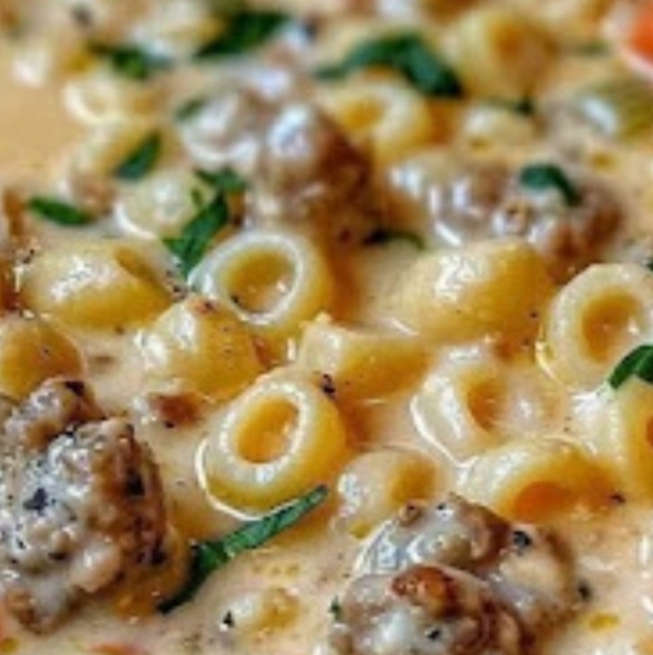 Ingredients: 1 lb Italian sausage (mild or hot, your choice) 1 tablespoon olive oil (optional, if sausage is lean) 1 small onion, diced 2 cloves garlic, minced 2 carrots, peeled and sliced 2 celery stalks, diced 4 cups chicken broth 1 cup heavy cream 1 ½ cups ditalini pasta (or any small pasta) 1 teaspoon Italian seasoning Salt & pepper to taste 1 cup shredded cheddar cheese (or a mix of cheddar & mozzarella) Fresh parsley, chopped (for garnish) Instructions: Cook the sausage: In a large soup pot over medium heat, cook the sausage until browned. Break it up into bite-sized pieces as it cooks. Remove excess grease if necessary. Sauté veggies: Add the diced onions, carrots, and celery to the pot. Sauté for 5–7 minutes until softened. Stir in the garlic and cook for 1 more minute. Add broth & seasonings: Pour in the chicken broth. Add Italian seasoning, salt, and pepper. Bring to a boil. Add pasta: Stir in the ditalini pasta and reduce the heat to medium. Simmer until pasta is al dente (about 10–12 minutes). Make it creamy: Stir in the heavy cream and shredded cheese. Let the cheese melt completely and soup thicken slightly. Adjust seasoning if needed. Serve: Garnish with chopped parsley and an extra sprinkle of cheese if desired. Serve hot with crusty bread!