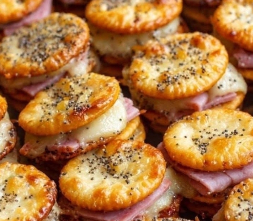 Ultimate Ritz Cracker Party Sandwiches 🧀🥪 – The Crowd-Pleaser You Didn’t Know You NeededWhen it comes to effortless entertaining, few recipes deliver on both flavor and presentation quite like Ritz Cracker Party Sandwiches. These bite-sized, buttery, savory morsels are the ultimate party appetizer, perfect for everything from game nights and birthdays to potlucks and holiday gatherings. With just a few pantry staples—Ritz crackers, deli ham, Swiss cheese, and a mouthwatering glaze—you’ll serve up a snack that guests won’t stop talking about. Forget boring finger foods. This is how you elevate the snack table. 🧂 Ingredients That Pack a PunchWhat makes these mini sandwiches so irresistible is the perfect balance of texture and flavor. Here’s what you’ll need: 48 Ritz crackers – Classic, buttery, and crisp.8 slices deli ham – Thinly sliced and flavorful.8 slices Swiss cheese – Melty and slightly nutty.4 tablespoons butter, melted – For that golden, indulgent finish.2 teaspoons Dijon mustard – Adds depth and tang.1 teaspoon Worcestershire sauce – Brings umami and savory richness.½ teaspoon garlic powder – A warm, aromatic kick.1 teaspoon poppy seeds – For crunch and classic baked flavor.½ teaspoon dried minced onion – Adds texture and a hint of sweetness.Pro Tip: Use high-quality deli meats and real Swiss cheese to get the best results. 🔥 How to Make Ritz Cracker Party Sandwiches – Step-by-Step InstructionsStep 1: Assemble the Mini SandwichesPreheat your oven to 350°F (175°C).Lay out 24 Ritz crackers on a baking sheet.On each cracker, place a slice of folded deli ham and a quarter slice of Swiss cheese.Top with the remaining 24 crackers, pressing gently to form sandwiches.Step 2: Prepare the Buttery GlazeIn a small mixing bowl, whisk together: Melted butterDijon mustardWorcestershire sauceGarlic powderPoppy seedsDried minced onionThis savory glaze adds richness and bakes into the crackers, creating an almost crunchy, caramelized coating that’s completely addictive. Step 3: Glaze the SandwichesUse a pastry brush or spoon to generously coat the tops of each sandwich with the buttery mixture.Be sure to cover the entire surface for full flavor in every bite.Step 4: Bake Until GoldenBake in the preheated oven for 10 to 12 minutes, or until the cheese has melted and the crackers are golden and crisp.Remove from the oven and let cool slightly before serving.These are best served warm, when the cheese is gooey and the glaze is at its peak flavor. 🌀 Cook Notes & Creative VariationsMeat SwapsTurkey Delight: Use deli turkey for a leaner twist.Roast Beef Rounds: Add a punch with savory roast beef.Salami Kick: Spice it up with peppered salami slices.Cheese AlternativesCheddar for BoldnessPepper Jack for HeatGouda for CreaminessAdd a Sweet ElementSpread a thin layer of fig jam or cranberry sauce on the bottom cracker before assembling for a sweet-savory flavor bomb.🥬 Keto & Low-Carb Friendly VersionsFor those watching carbs, there’s no need to miss out: Keto VersionSwap Ritz crackers for keto-friendly crackers or cucumber slices.Use lettuce wraps or cheese crisps as sandwich “bread.”Modify the glaze: use Erythritol or monk fruit sweetener in place of sugar-containing sauces.Low-Carb VersionChoose low-carb crackers or crispbread bases.Select natural deli meats with no added sugars.Adjust the glaze by skipping Worcestershire sauce or using a sugar-free version.💡 Tips for Serving Ritz Cracker Party SandwichesServe Warm: These sandwiches are best hot out of the oven. If needed, keep them warm in a low oven (around 200°F).Prep Ahead: Assemble and refrigerate the sandwiches, then glaze and bake just before serving.Make It a Platter: Arrange with olives, pickles, or small cheese cubes for a full party snack spread.📦 How to Store and ReheatLeftovers? No problem. Store in an airtight container in the refrigerator for up to 3 days.To reheat, pop them back in the oven at 300°F for 5–7 minutes or until warm and crispy again. Avoid the microwave if you want to keep that signature crunch.🎉 Perfect for Every OccasionThese mini cracker sandwiches are versatile enough to be served anywhere: 🎈 Birthday parties🏈 Game day gatherings🎄 Holiday parties🧺 Picnics🏢 Office potlucks🎬 Movie nights🥂 Cocktail partiesThey’re bite-sized, mess-free, and irresistibly good. ❓ Frequently Asked Questions (FAQs)Q1: Can I make Ritz Cracker Sandwiches ahead of time?Yes! Assemble the sandwiches and store them in the fridge. Glaze and bake just before serving for maximum freshness. Q2: Can I use different meats?Absolutely! This recipe works great with salami, roast beef, turkey, or even vegan deli slices. Q3: How do I make these gluten-free?Use gluten-free butter crackers and make sure your deli meats and sauces are certified gluten-free. Q4: Can I take these on the go or pack for lunch?Definitely. Once baked and cooled, pack them in a container or wrap individually in foil for a delicious on-the-go snack. Q5: Can I customize the glaze?Yes! Add a touch of honey, maple syrup, or hot sauce to adjust the sweetness or heat to your liking. 💬 Final ThoughtsThere’s something undeniably satisfying about the crispy, buttery bite of a Ritz cracker combined with melty cheese, savory ham, and that flavor-packed glaze. These Ultimate Ritz Cracker Party Sandwiches check every box—easy, crowd-pleasing, and endlessly customizable. Whether you’re hosting a big event or just want to impress your family on a weeknight, this recipe guarantees smiles all around. Don’t be surprised if they vanish within minutes!