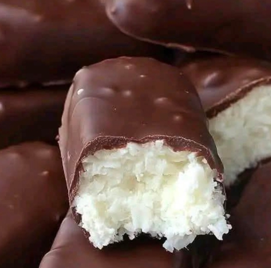 Recipe Introduction:This sweet treat is a simple, irresistible dessert that’s quick to make and perfect for satisfying your sweet tooth. With just a few ingredients and a blender, you can whip up these delicious coconut chocolate bars, which are so easy to prepare and always a hit. I make them twice a week, and they never fail to impress! Ingredients:1 cup shredded coconut1/4 cup honey or maple syrup (or sweetener of choice)1/4 cup coconut oil1/4 teaspoon vanilla extractA pinch of salt100g dark chocolate (for coating)Instructions:Blend the ingredients: Place the shredded coconut, honey (or maple syrup), coconut oil, vanilla extract, and salt into a blender. Blend until it forms a sticky dough-like consistency. If the mixture is too dry, add a bit more coconut oil or honey.Shape the mixture: Take spoonfuls of the coconut mixture and shape them into small bars or round balls using your hands. Place them on a baking sheet lined with parchment paper.Freeze the bars: Place the shaped bars in the freezer for at least 30 minutes to firm up.Melt the chocolate: While the coconut bars are freezing, melt the dark chocolate in a heatproof bowl over a pot of simmering water or microwave it in short bursts, stirring until smooth.Coat the bars: Once the coconut bars are firm, dip each bar into the melted chocolate, ensuring it’s completely coated. Place them back on the parchment paper.Let them set: Allow the chocolate-covered bars to set by leaving them in the fridge or freezer for another 15-20 minutes, until the chocolate hardens.Serve: Enjoy your homemade coconut chocolate bars whenever you need a quick dessert fix!These bars are perfect for sharing or enjoying by yourself. Let me know if you try them! 🤤❤️